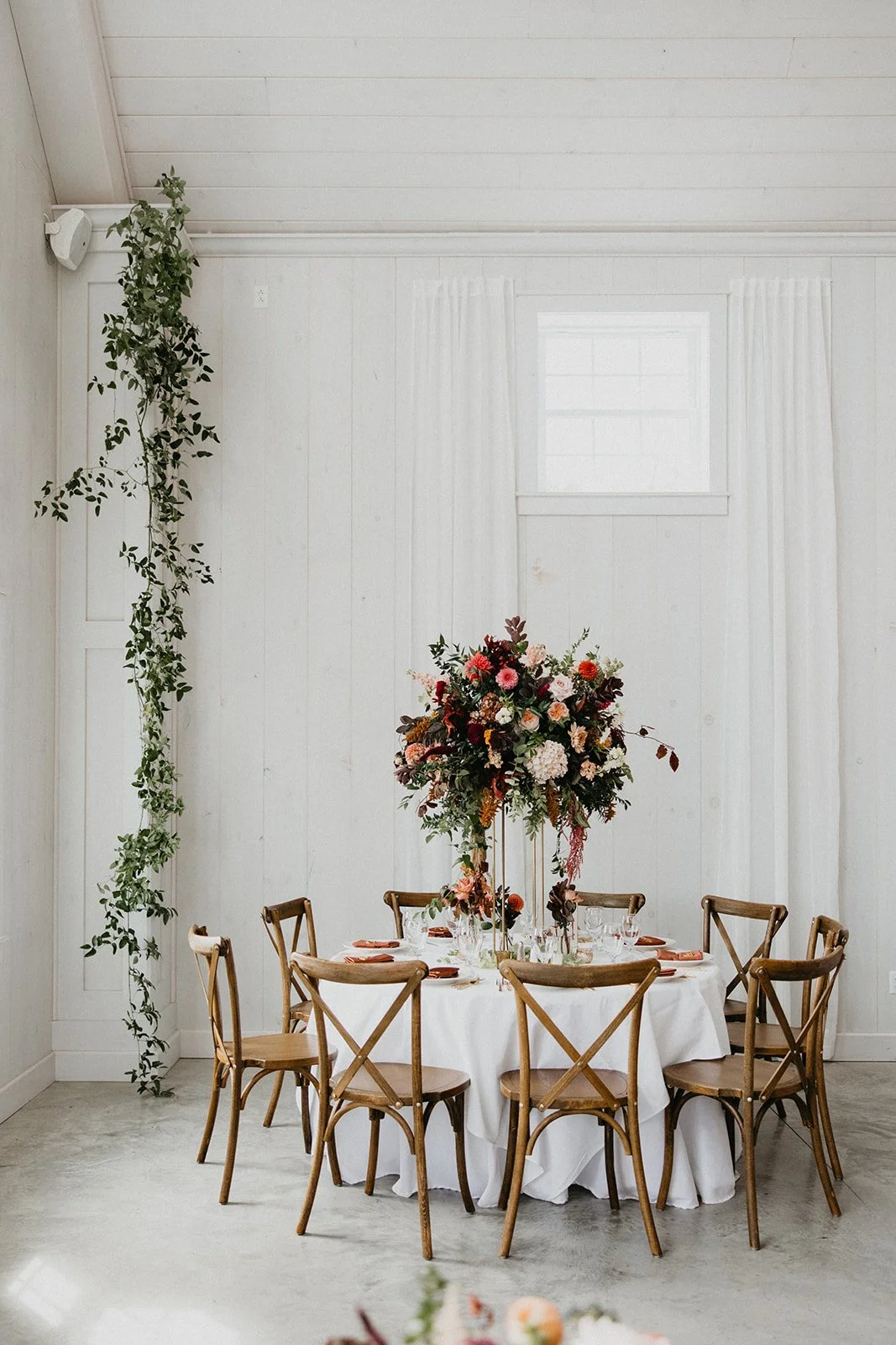 Colorful Venues: Choose floral colors that harmonize rather than clash with the venue’s hues. For example, if the venue has a lot of rich, dark wood, consider soft pastels or deep jewel tones. Choosing the right colors can help bolder textiles like curtains or carpets blend more into the space rather than stand out!