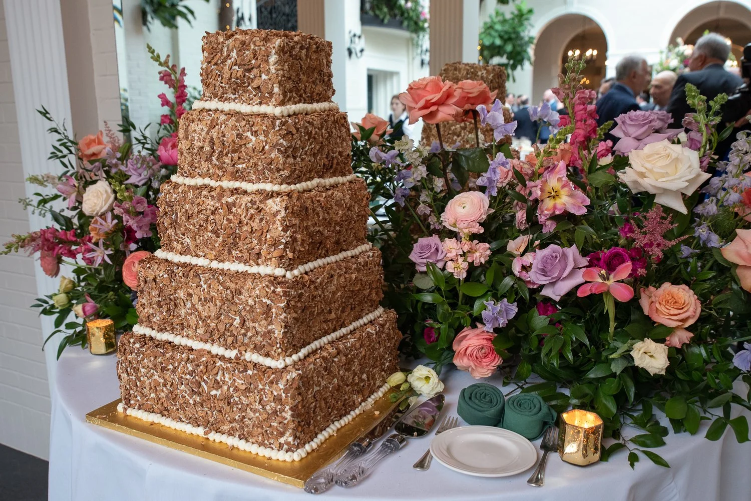 Adorning the ceremony aisle, around your cake, or even as a centerpiece, organic arrangements heavy in flowers and greenery, as if they're growing from the ground, are trending! We love creating these pieces because they offer a truly stunning and romantic look.