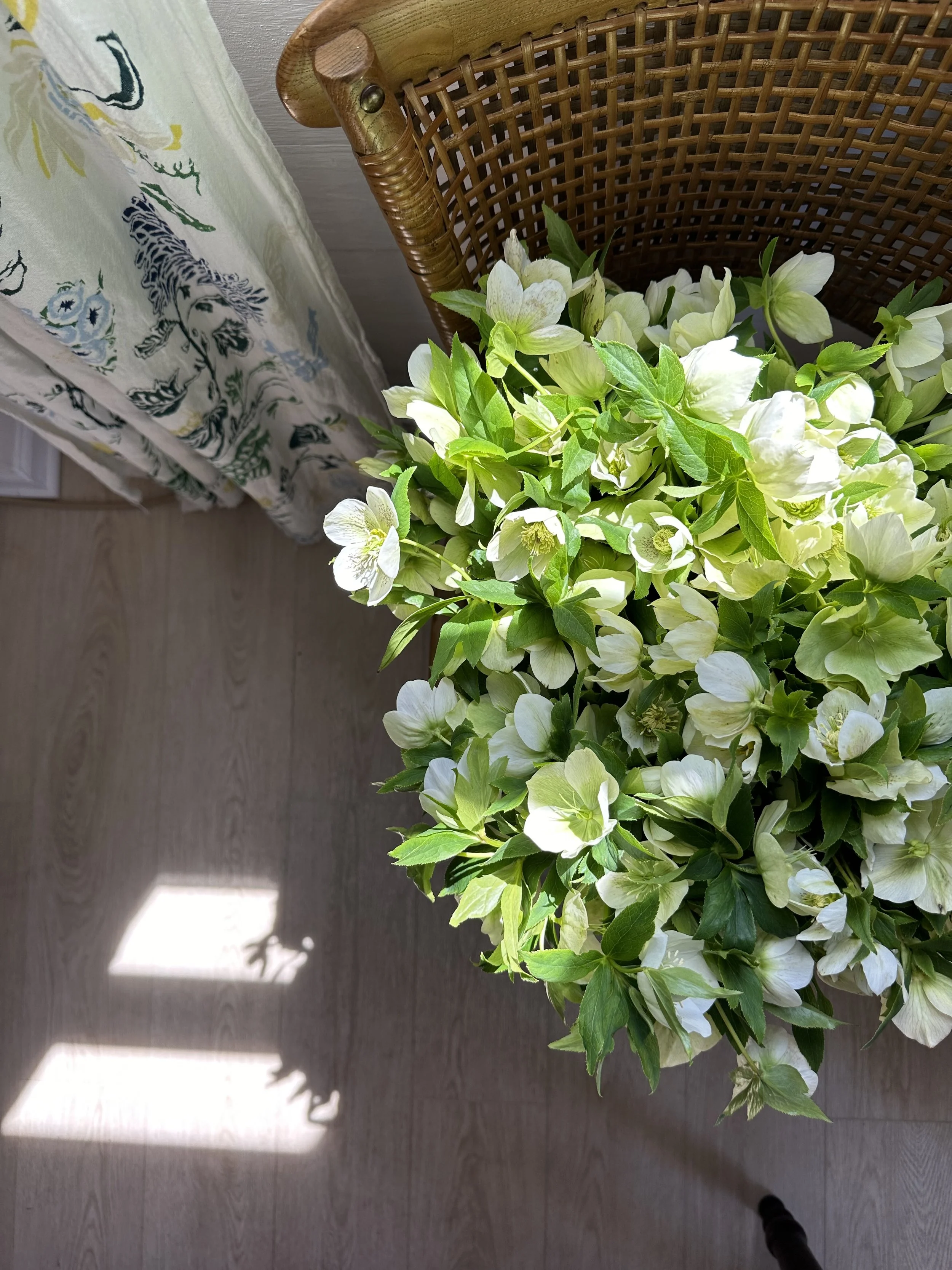Since all of our flowers are special ordered for each client’s event (we never use flowers from a previous wedding or event) they arrive to our cottage by refrigerated box truck on Tuesday! The majority of the day is spent processing. Processing is when we take the flowers from their delivery state and get them hydrated and prepped for designing. We unbox the flowers, Cloe counts them against our order, checks for quality and color, we strip the leaves and thorns, and hydrate them in buckets of water. Every flower needs to be prepped differently depending on the type!